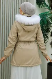 Şıklık ve fonksiyonelliği bir araya getiren bu mont, belden ayarlanabilir bağcık detayıyla vücudunuza mükemmel uyum sağlar ve zarif bir siluet oluşturur. Çıtçıt ve fermuar kapama detayları işlevselliği artırırken, kürklü ve çıkarılabilir kapüşonuyla modern bir hava kazandırır.